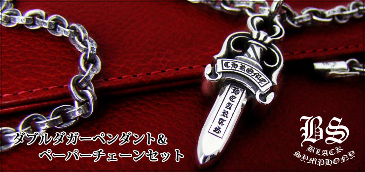クロムハーツ ダブルダガーペンダント&ペーパーチェーンネックレス20インチセット