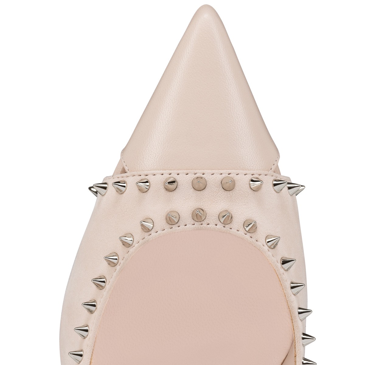 エレガントなカットアウトが印象的な"Duvette Spikes" (デュベットスパイクス)パンプス。 ブランドシグネチャーのスモールスパイクがコーディネートのアクセントとなります。
