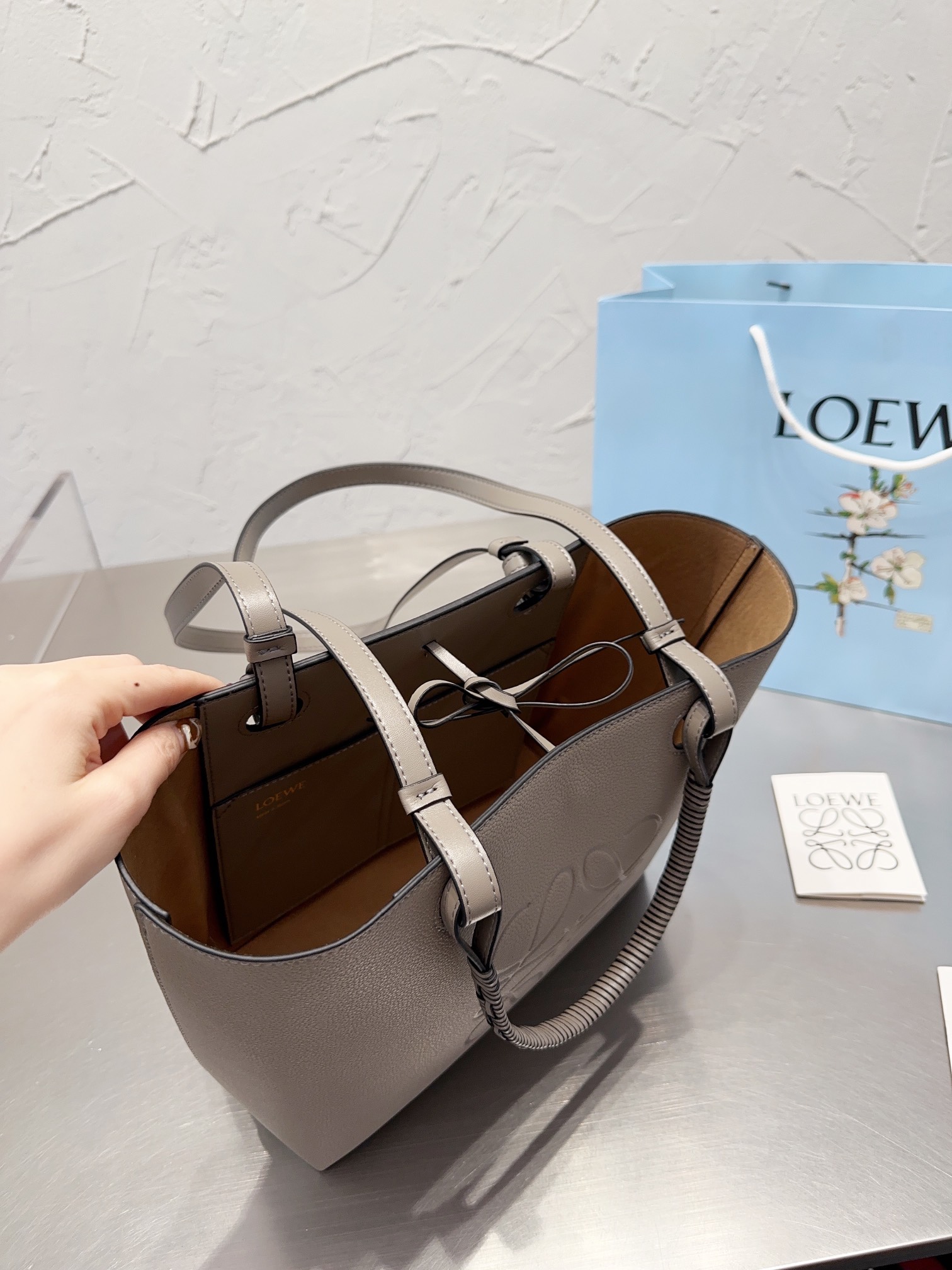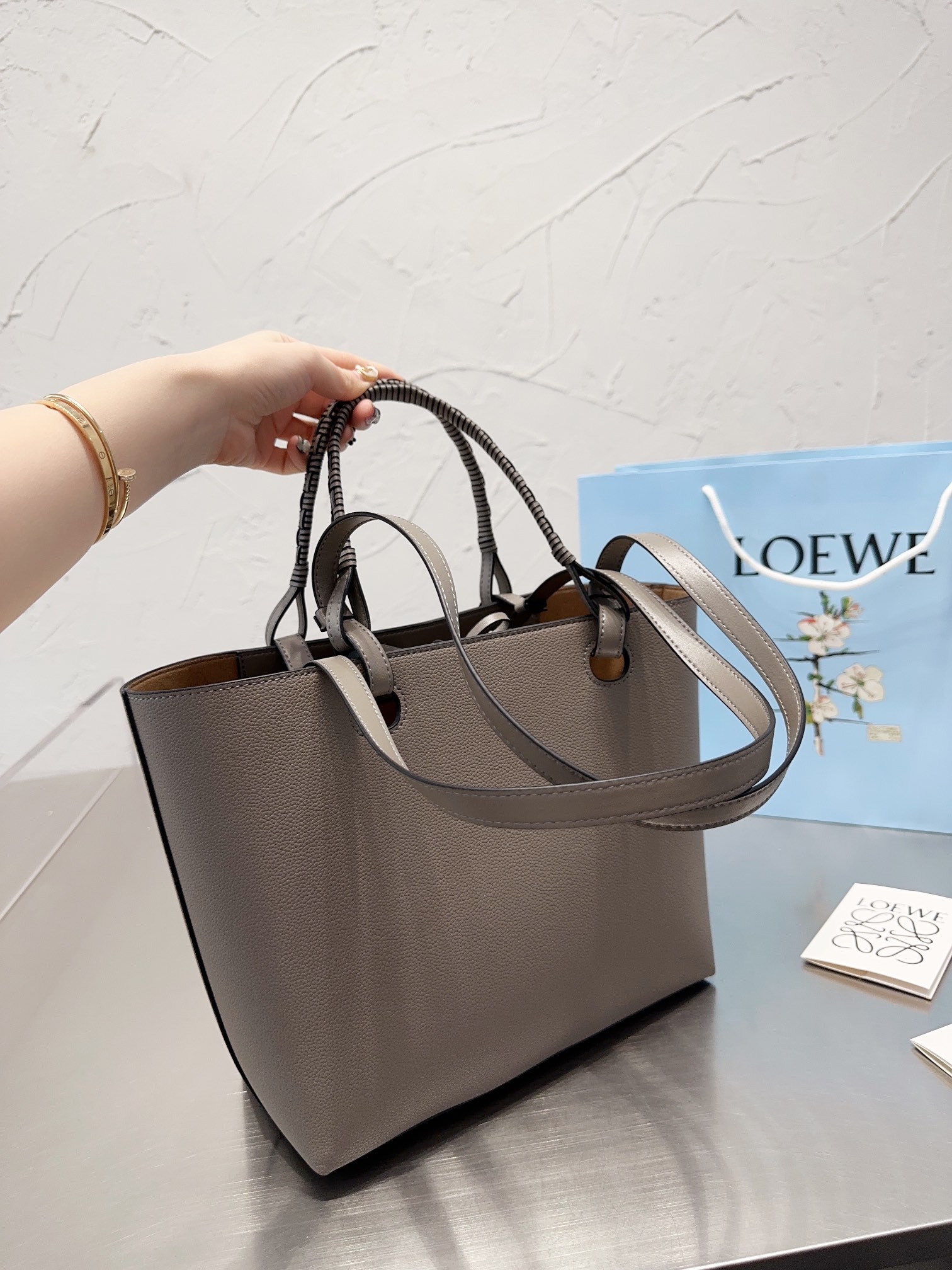 LOEWE 2021春夏シリーズは、クラシックなアナグラム型押しレザーショッピングバッグを再解釈し、伝統的なバスケット編み技術をレザーハンドルに統合し、光沢のあるカーフスキンボディと組み合わせて、実用的なバッグにファッションの緊張感を与え、LOEWEのロゴをプリントしました。シンプルな雰囲気を反映できます