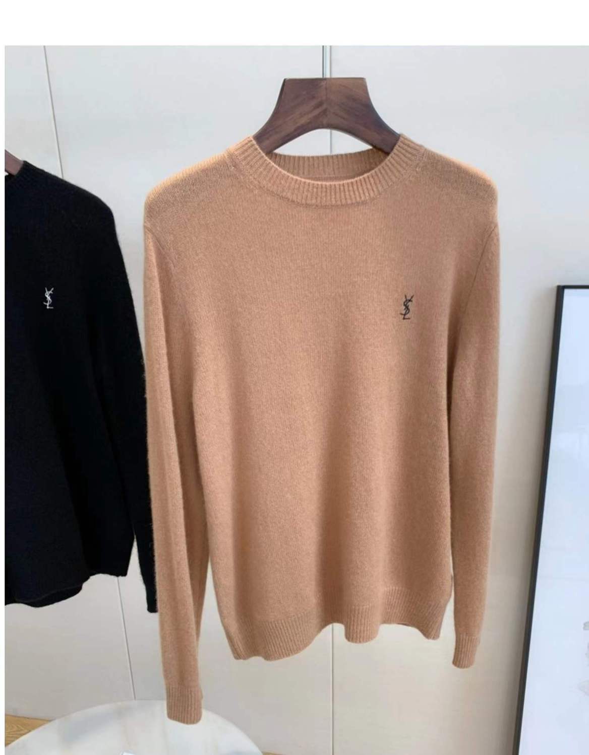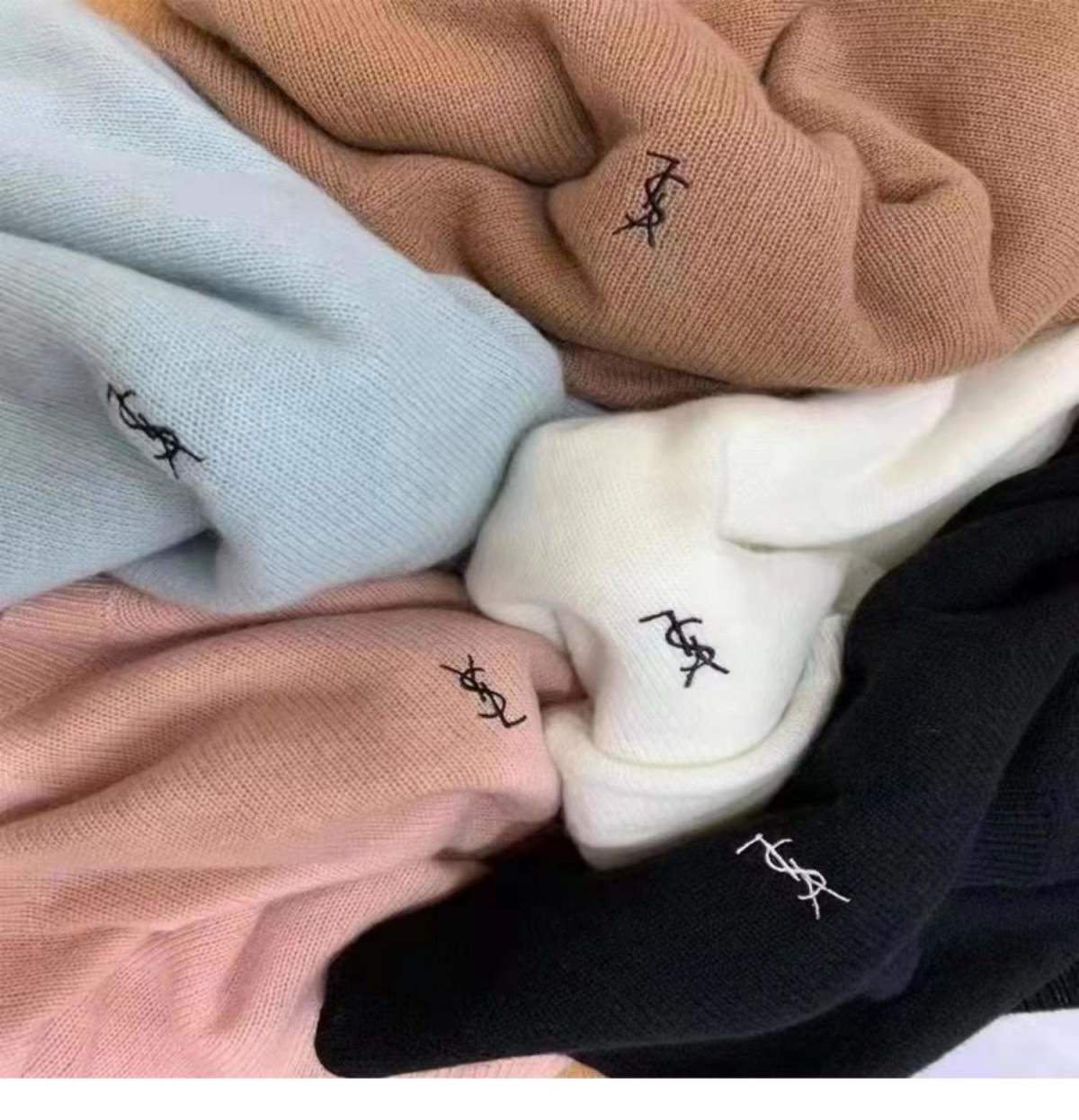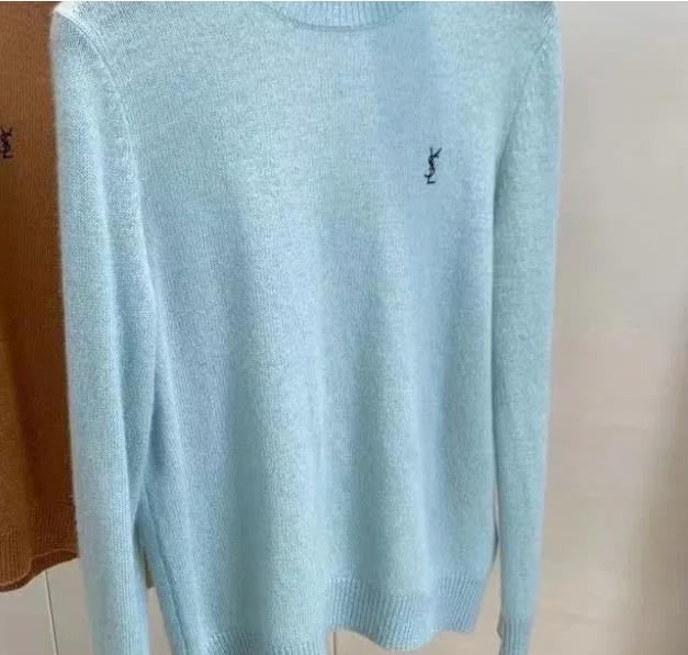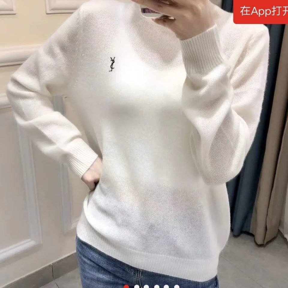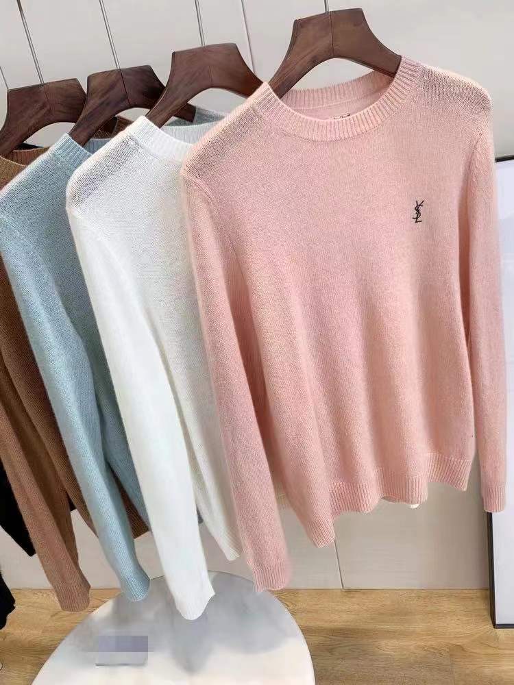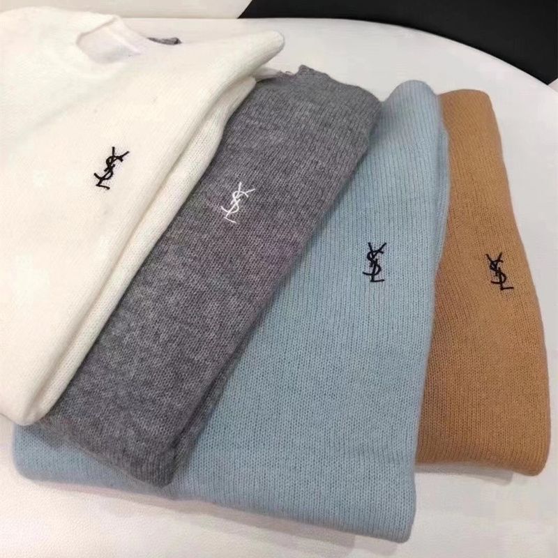 【サンローラン】YSL薄手の刺繍入りルーズラウンドネックカシミヤボトムス